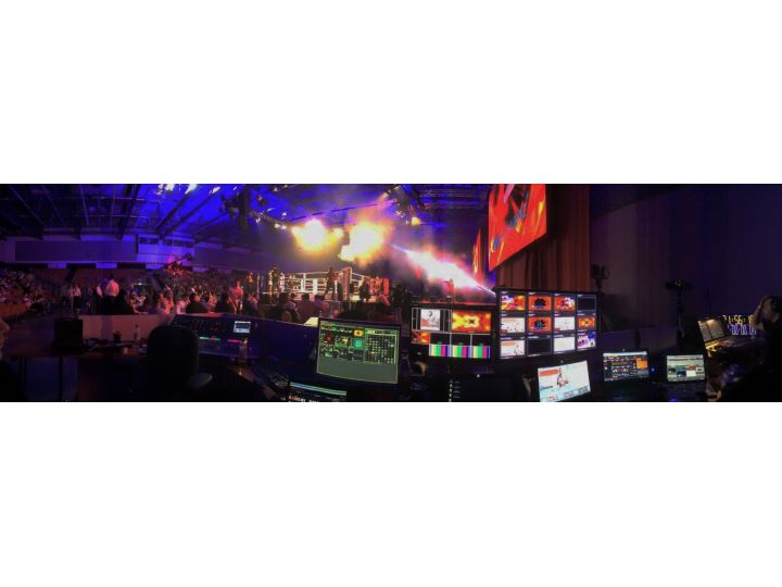 Colito lieferte für die Mix-Fight-Gala in der Esperantohalle in Fulda 70 Quadratmeter hochauflösende LED-Videowand. Das eingehende Livebildsignal aus dem Ü-Wagen von SRP-Fernsehen wurde mittels Black Magic AtemOne und graphischen Einspielung über einen GreenHippo Stage Medienserver zu einer fantastischen Boxkulisse visualisiert.